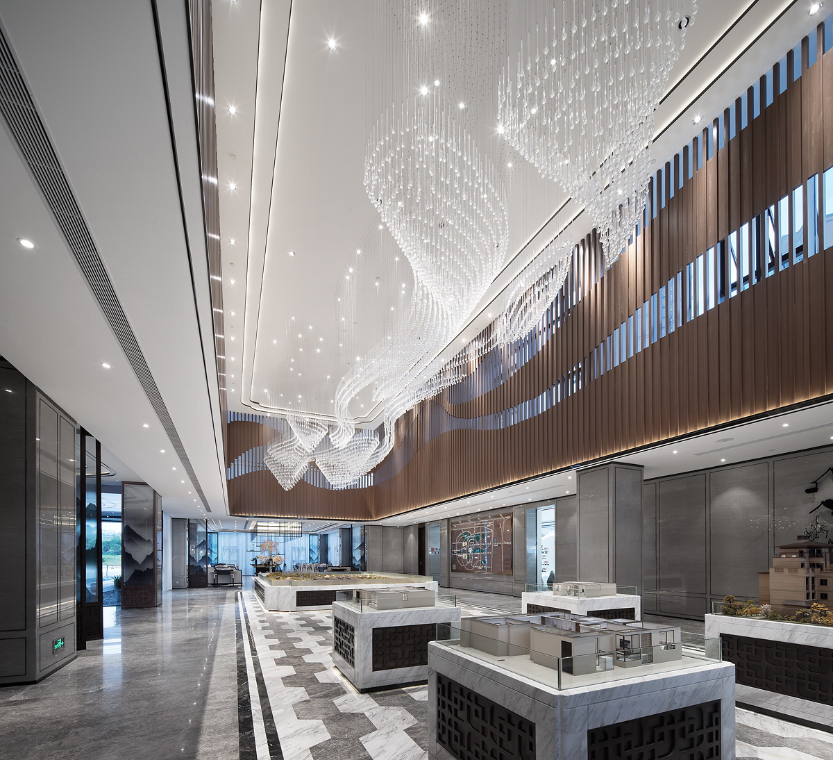 設(shè)計師融合地域獨有的生態(tài)和特色元素,打造蘊藏人文藝術(shù)及記憶點的新中式風(fēng)格售樓處空間。設(shè)計師從地域文化中挖掘創(chuàng)意靈感,用心描繪內(nèi)在和外表的訴求,呈現(xiàn)充盈傳統(tǒng)中式氣質(zhì)和現(xiàn)代美學(xué)的獨特空間。