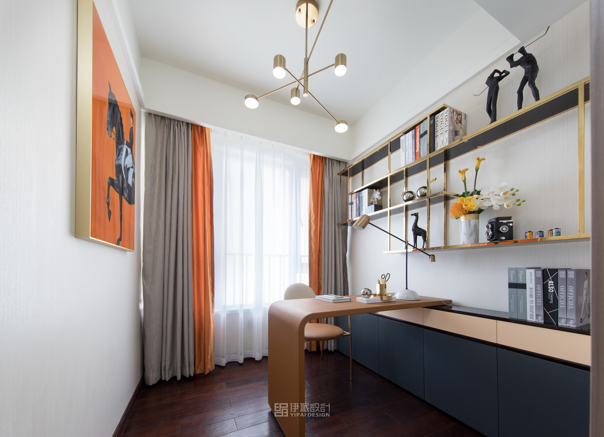 本案軟裝設計工程針對現(xiàn)代空間的美學思考,將上世紀的雕像與現(xiàn)代藝術,融合出獨具一格充滿西方氣息的藝術空間,神秘感縈繞其中,將“愛馬仕橙”作為設計核心,以港式輕奢的格調來定義空間的精神氣質,演繹品質高貴生活。